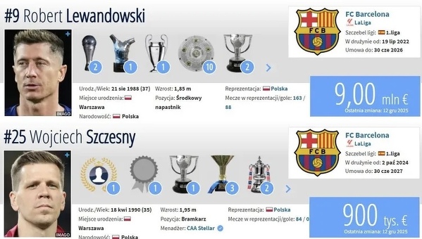 Spadki wartości Lewego i Szczęsnego
