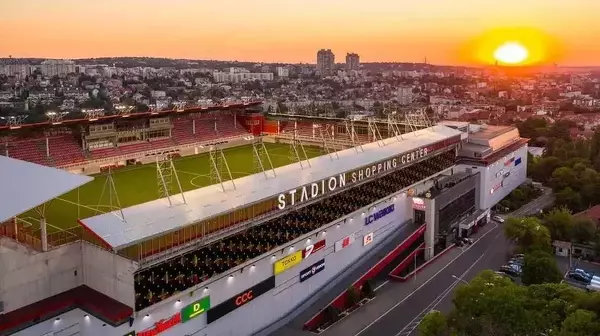 Stadion FK Voždovac, który znajduje się na dachu galerii handlowej