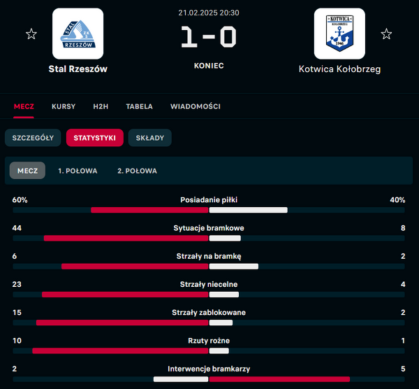 Stal Rzeszów miała w meczu z Kotwicą aż 44 sytuacje bramkowe a strzeliła tylko jedną bramkę