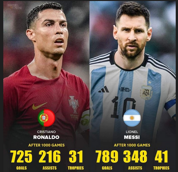 Statystyki CR7 i Messiego po rozegraniu 1000 meczów