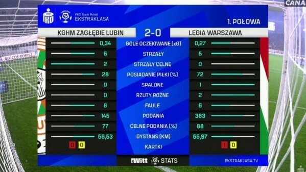 Statystyki I połowy meczu Zagłębie - Legia