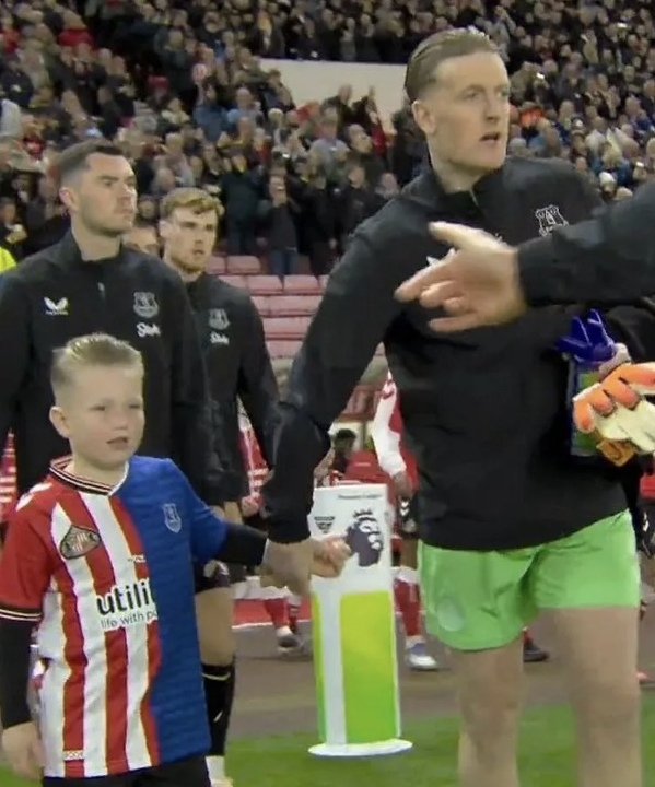 Syn Pickforda wyprowadził tatę na mecz w koszulce Sunderlandu i Evertonu jednocześnie