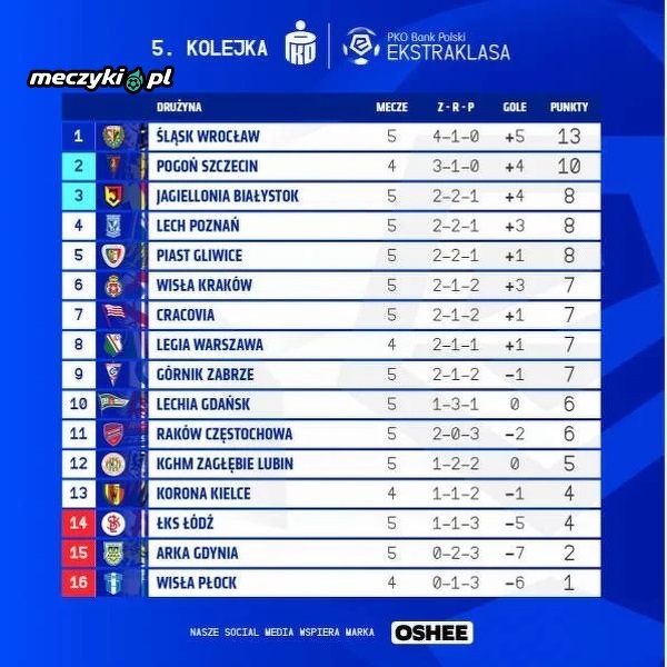 Tabela Ekstraklasy po niedzielnych meczach