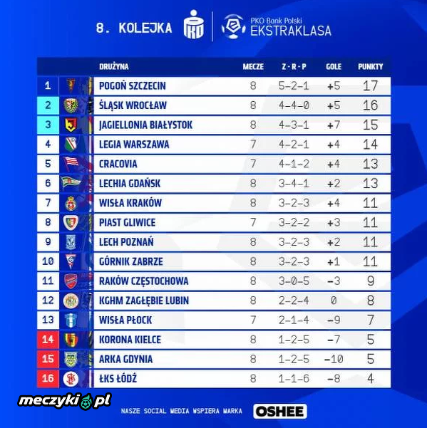 3. Tabela Ekstraklasy po niedzielnych meczach