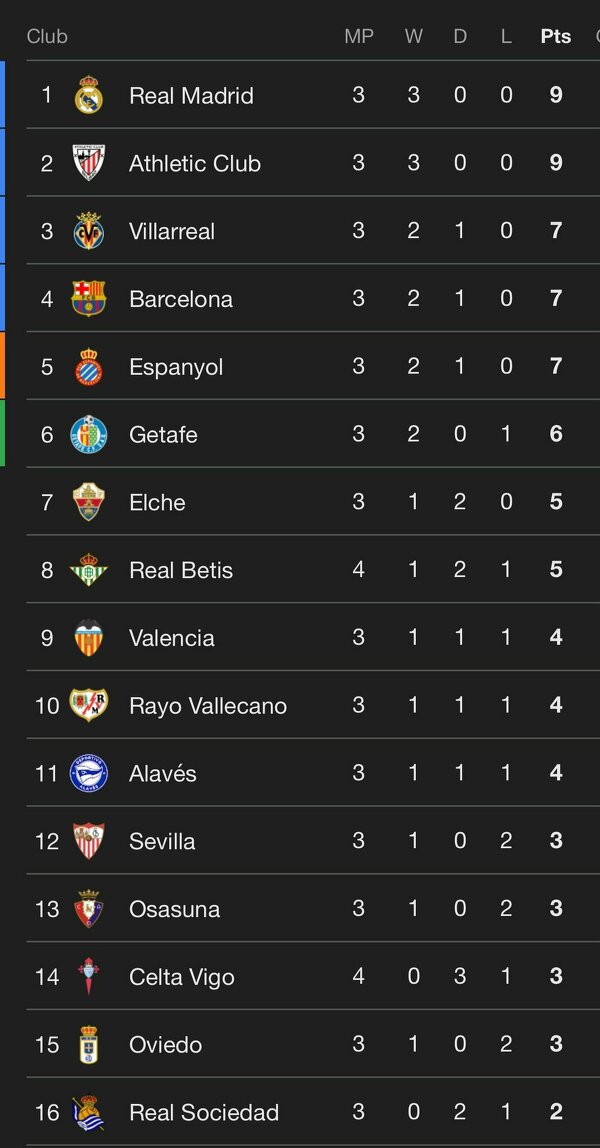 Tabela La Liga. Znajdź Ateltico Madryt