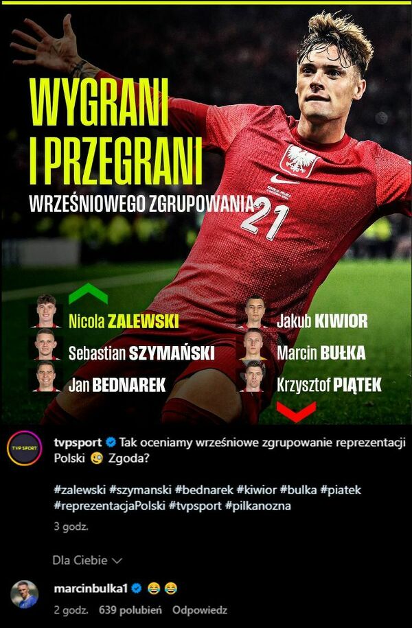 Tak Marcin Bułka skomentował post TVP Sport