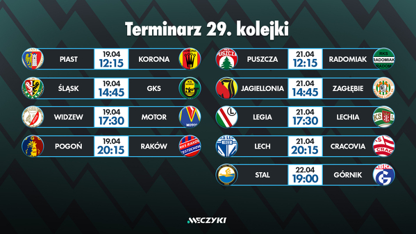 Tak prezentuje się terminarz 29. kolejki Ekstraklasy