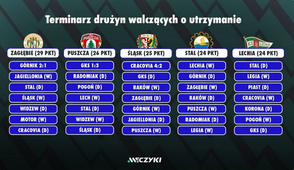 Tak prezentuje się terminarz drużyn walczących o utrzymanie