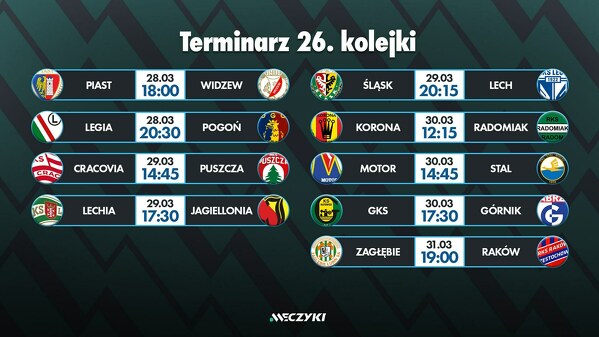 Tak prezentuje się terminarz tej kolejki Ekstraklasy