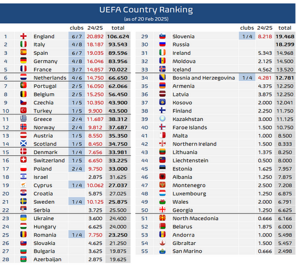 Tak wygląda ranking UEFA po meczach w tym tygodniu