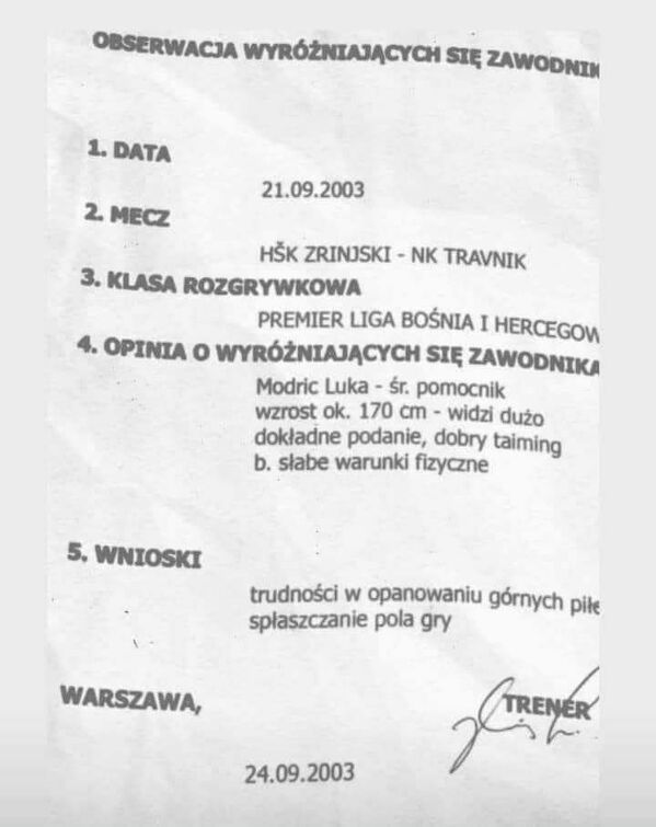 Tak wyglądał raport jednego z polskich skautów na temat Luki Modricia 21 lat temu