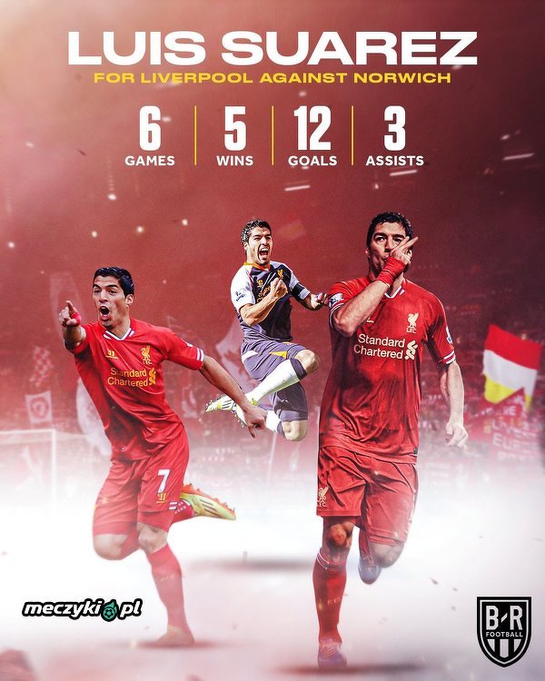 Tego dnia w 2013 roku Luis Suarez strzelił 4 gole przeciwko Norwich