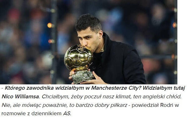Tego piłkarza Rodri widziałby w Man City