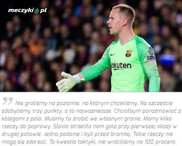 Ter Stegen po meczu ze Slavią Praga"Chciałem porozmawiać z kolegami z pola"