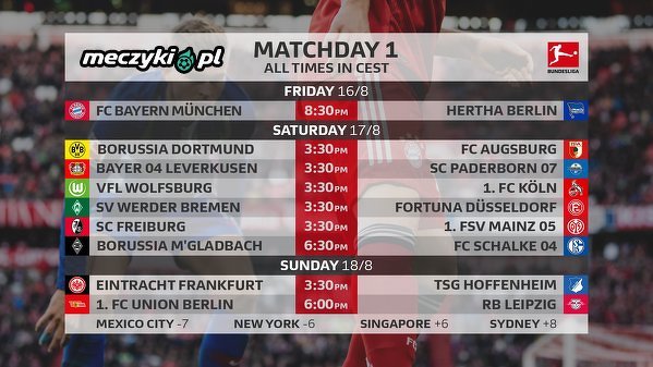 Terminarz 1. kolejki Bundesligi 2019/20