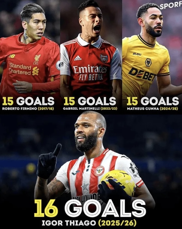 Thiago Brazylijczykiem, który zdobył najwięcej bramek w pojedynczym sezonie Premier League