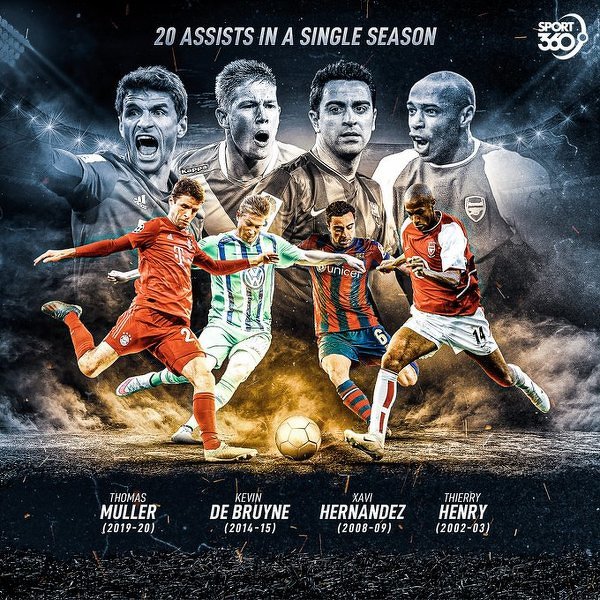 Thomas Muller dołączył teraz do ekskluzywnego klubu graczy, który osiągnął 20 asyst w jednym sezonie