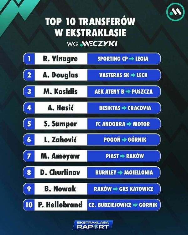TOP 10 transferów w tym sezonie Ekstraklasy