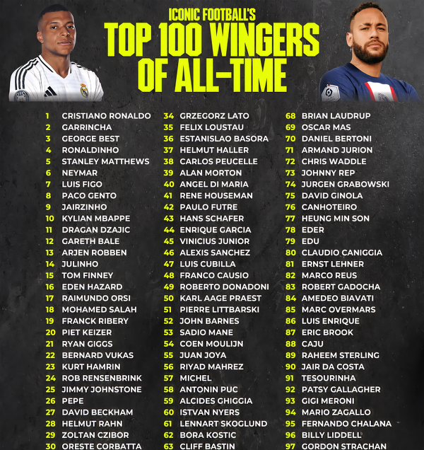 Top 100 najlepszych skrzydłowych według "Four Four Two"