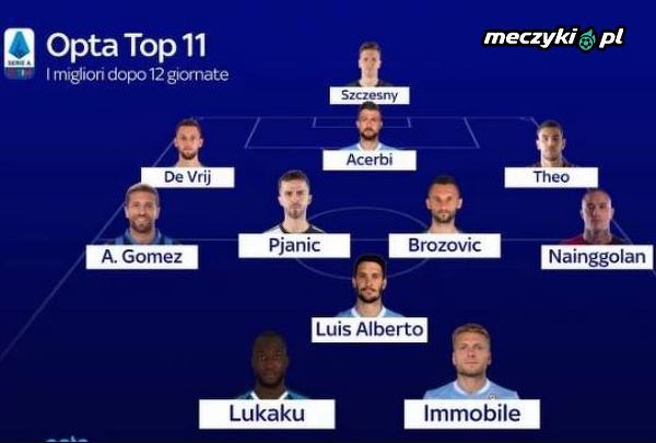 TOP 11 sezonu Seria A po 12. kolejkach według serwisu"Opta"