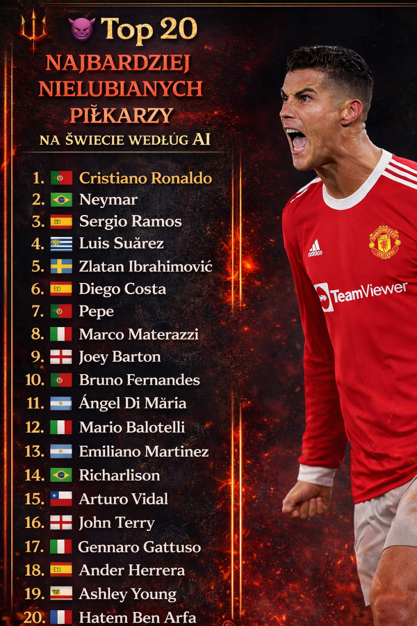 Top 20 najbardziej nielubianych piłkarzy według AI