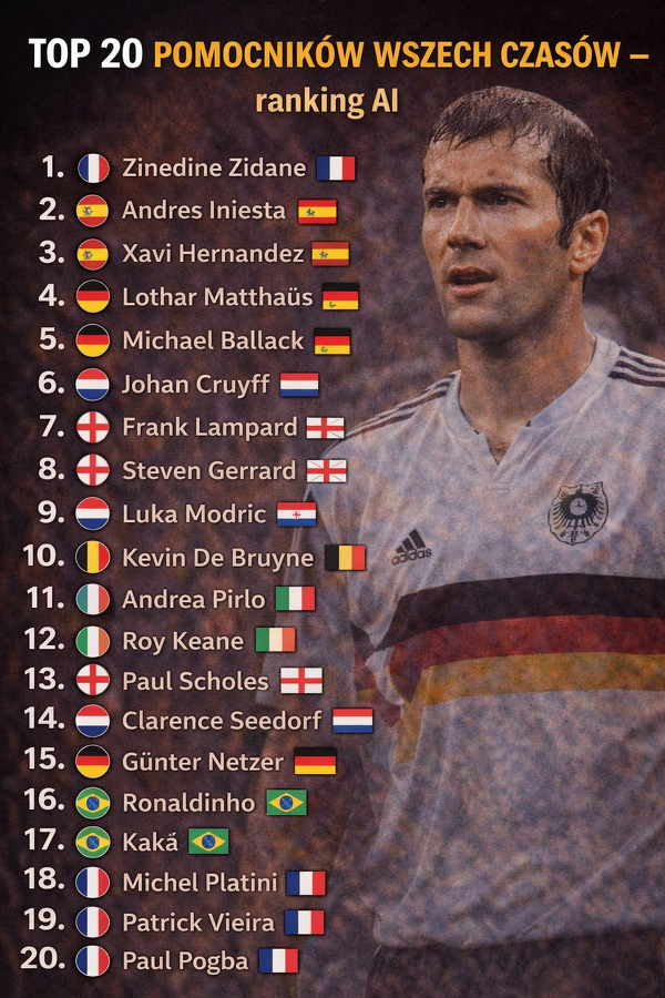 Top 20 pomocników wszechczasów wg algorytmu AI