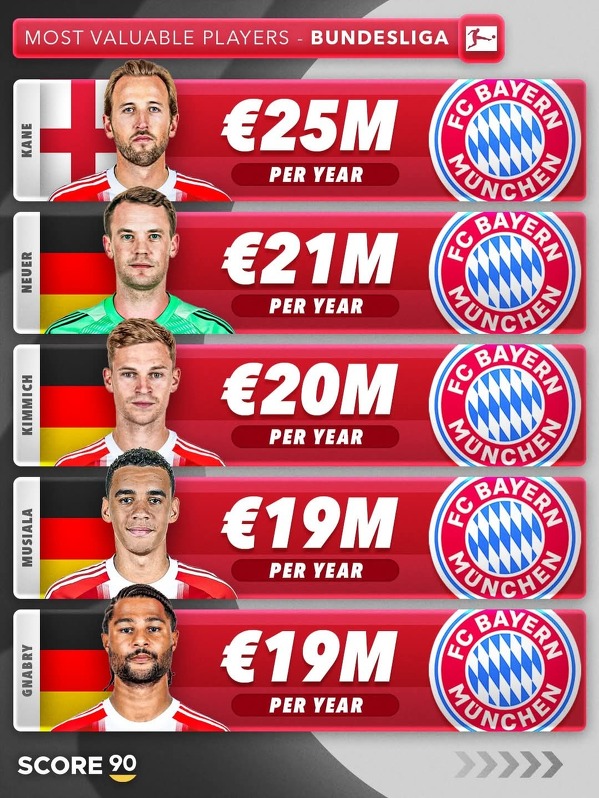 TOP 5 najlepiej zarabiających piłkarzy CAŁEJ Bundesligi.