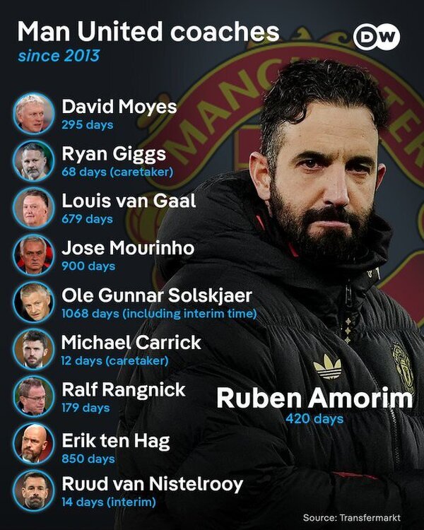 Trenerzy Man Utd od 2013 roku i ich czas pracy w klubie