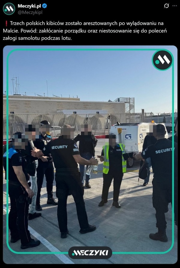 Trzech polskich kibiców zostało aresztowanych po wylądowaniu na Malcie