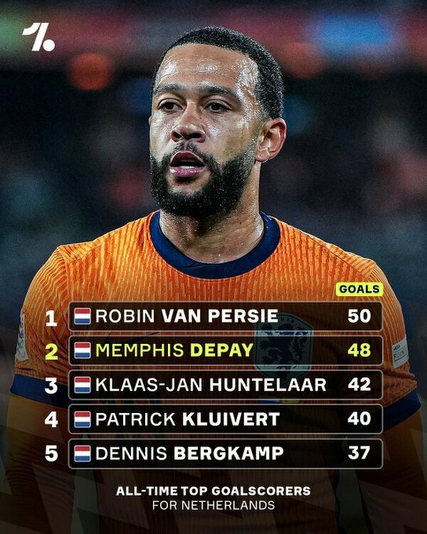 Trzy gole dzielą Depaya, aby zostać najlepszym strzelcem w historii reprezentacji Holandii