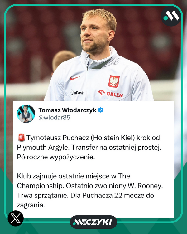 Tymoteusz Puchacz (Holstein Kiel) bardzo blisko wypożyczenia do Plymouth Argyle - informuje Tomasz Włodarczyk.