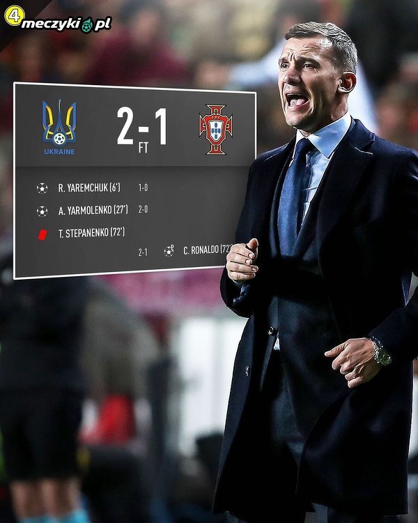 Ukraina, trenowana przez Andrij Szewczenko, zakwalifikowała się do Euro 2020 wygrywając z Portugalią