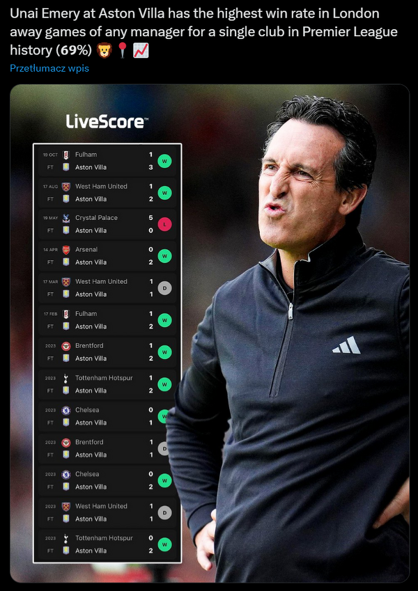 Unai Emery ma sposób na mecze wyjazdowe z londyńskimi drużynami
