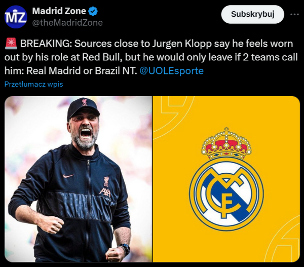 UOL Esporte: Klopp kandydatem na trenera Realu