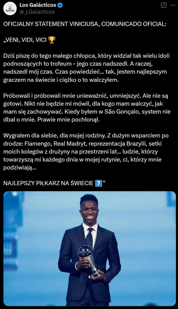 Vinicius o wygranej w plebiscycie FIFA The Best