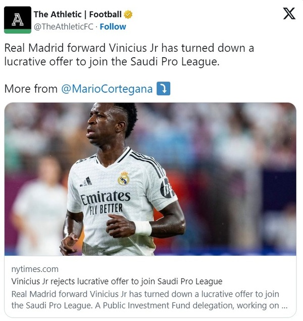 Vinicius odrzucił ofertę z Arabii Saudyjskiej