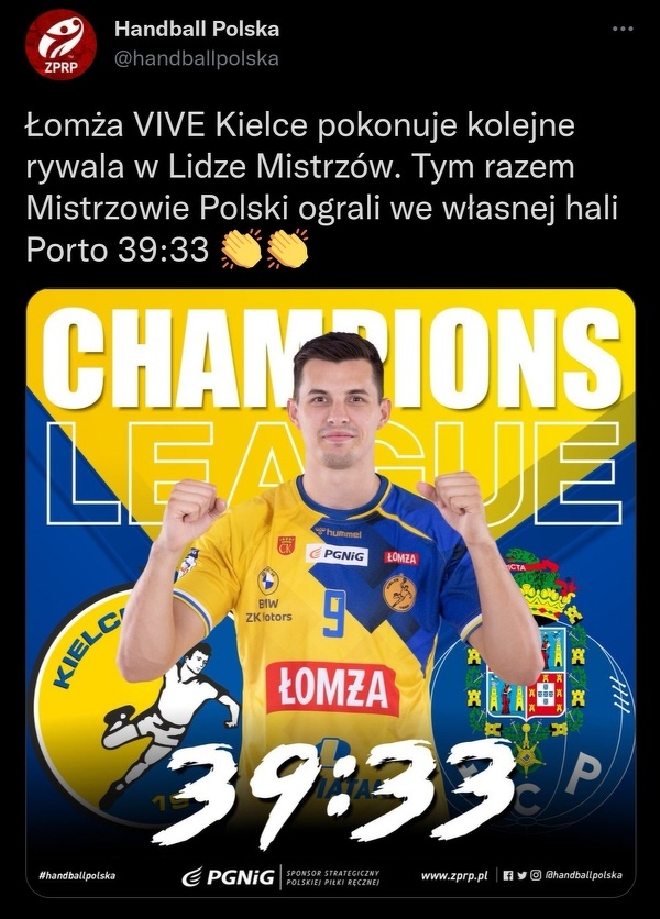 VIVE Kielce pokonują FC Porto w Lidze Mistrzów.