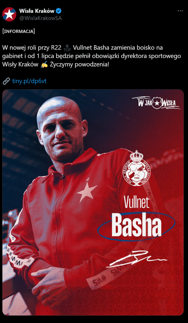 Vullnet Basha został nowym dyrektorem sportowym Wisły Kraków