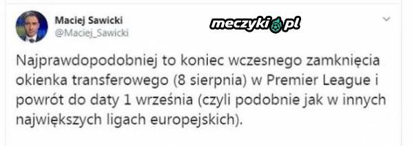 W Premier League znowu zmieni się termin zamknięcia okna transferowego