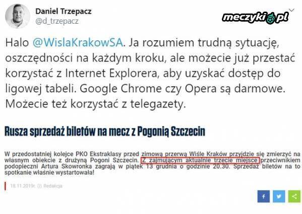 W Wiśle nie znają tabeli Ekstraklasy