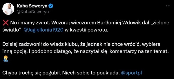 Wdowik nie wróci do Jagielloni