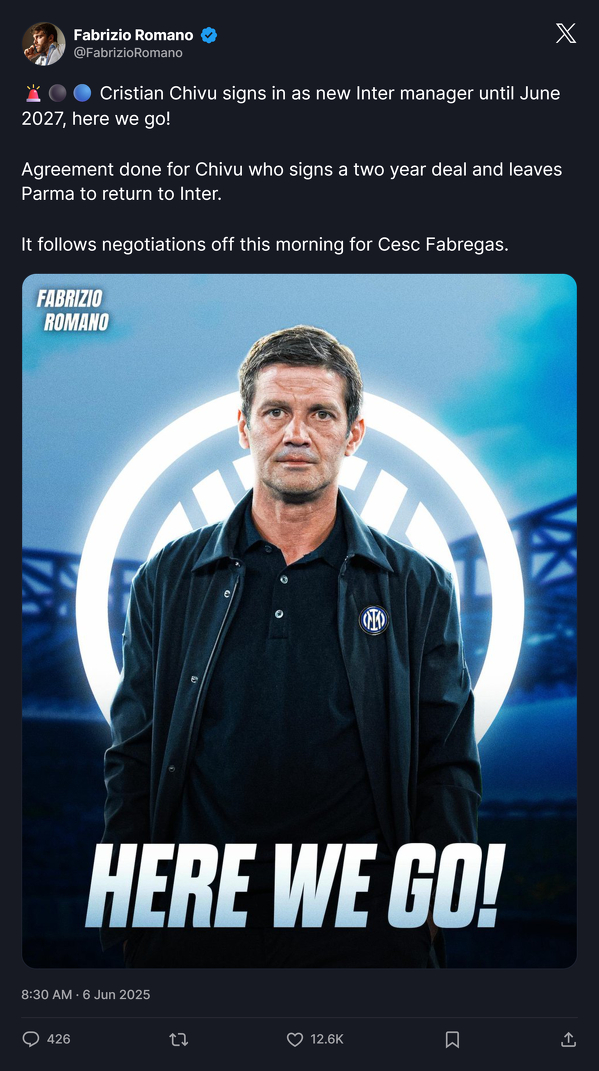 Według Fabrizio Romano Cristian Chivu zostanie trenerem Interu
