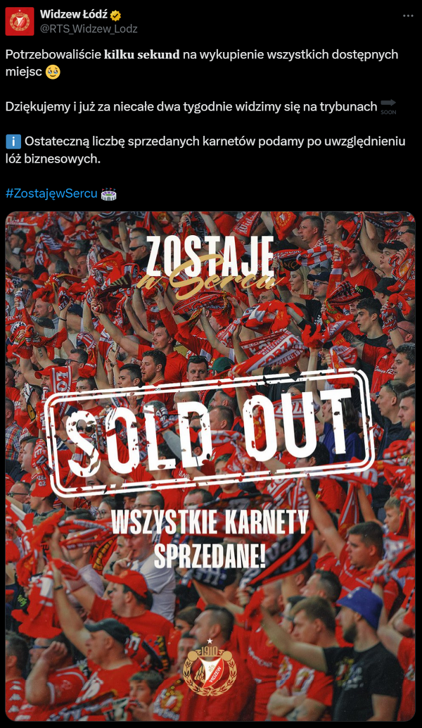 Widzew sprzedał wszystkie karnety na nadchodzący sezon