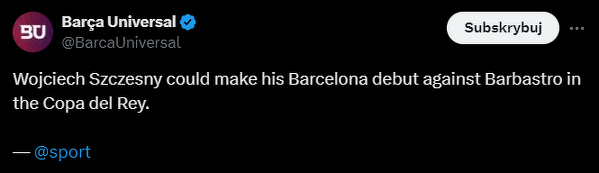 Wojciech Szczęsny ma zadebiutować w Barcelonie na początku stycznia