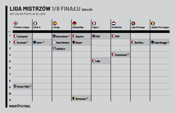 Wszystkie drużyny, które zagrają w 1/8 Ligi Mistrzów
