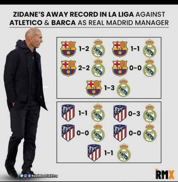 Wyjazdowy bilans Zidane'a z Barceloną i Atletico