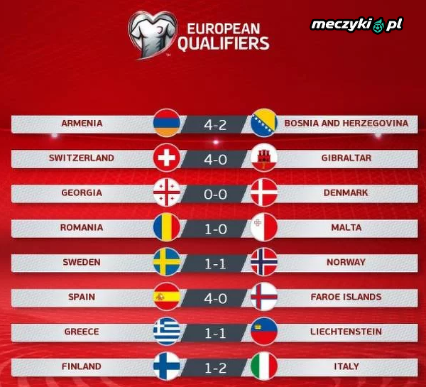 Wyniki niedzielnych meczów eliminacyjnych do EURO 2020