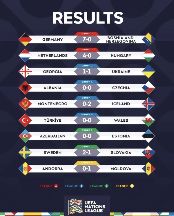 Wyniki wczorajszych meczów w Lidze Narodów