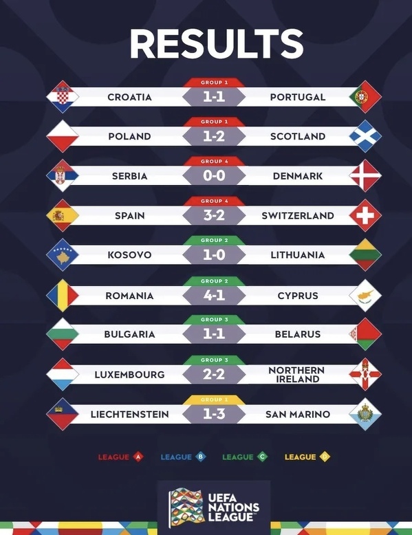 Wyniki wczorajszych meczów w Lidze Narodów