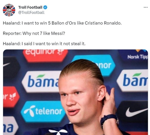 Wypowiedź Haalanda na temat Złotej Piłki.